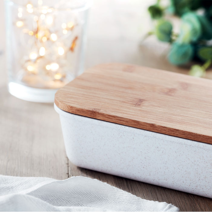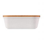 Lunchbox van 50% bamboevezel/ 50% PP met bamboe deksel. Bamboe is een natuurlijk materiaal, waardoor de kleur per item kan verschillen.