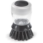 Compacte afwasborstel met bedrukkingsruimte op het handvat. Het is mogelijk om in het transparante handvat afwasmiddel te doen. Ideaal voor op de camping en in de keuken.