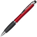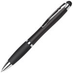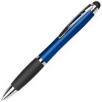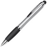 Balpen met draaimechanisme en rubberen grip inclusief stylusfunctie. De balpen wordt voorzien van een laser gravering en de geïntegreerde LED-lampjes zullen uw logo en/of bedrijfsnaam oplichten.