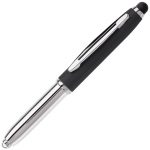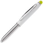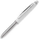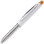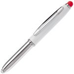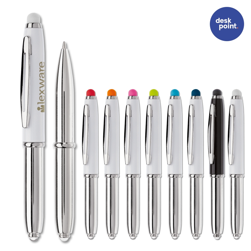 Touchscreen pen met lampje en balpen. Balpen te gebruiken door dop eraf te halen. Blauwschrijvend.