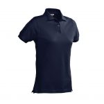 Deze voorgekrompen polo heeft korte mouwen en een platgebreide rijkraag. Ook heeft de polo zijsplitjes en een drie-knoopsluiting. De achterzijde is 3 cm langer.