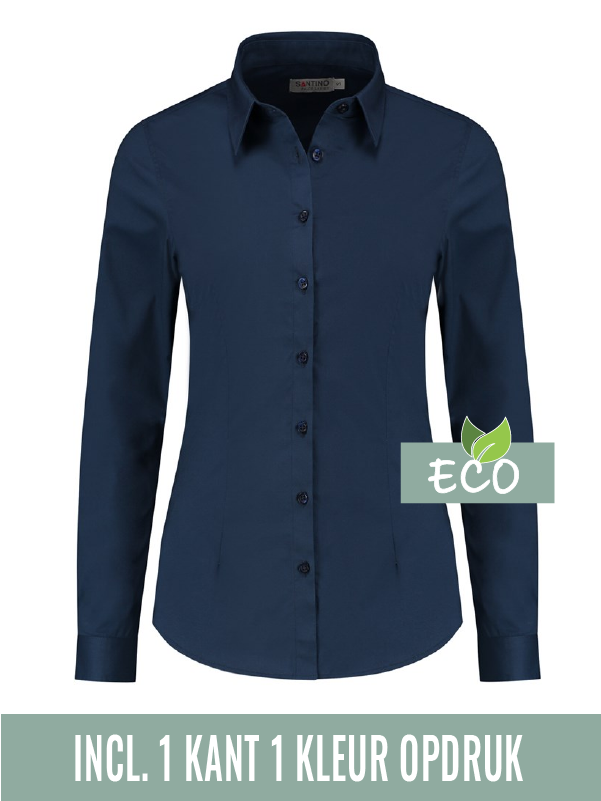 Dames slim fit shirt met lange mouwen, modern kraag, verstelbare manchetten, bustenaden en getailleerd met coupenaden voor en achter.