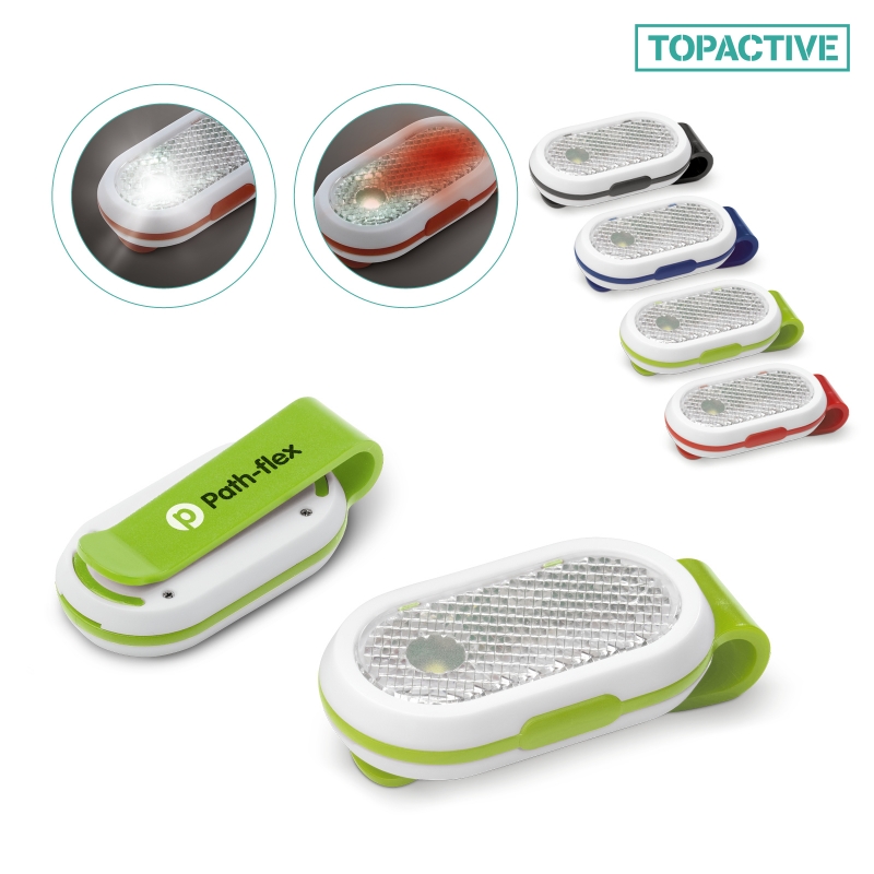 Licht dat eenvoudig te bevestigen is op kleding of tassen. Kan ook gebruikt worden als voor- of achterlicht. Een manier om beter zichtbaar te zijn tijdens het sporten in de late avonduurtjes.