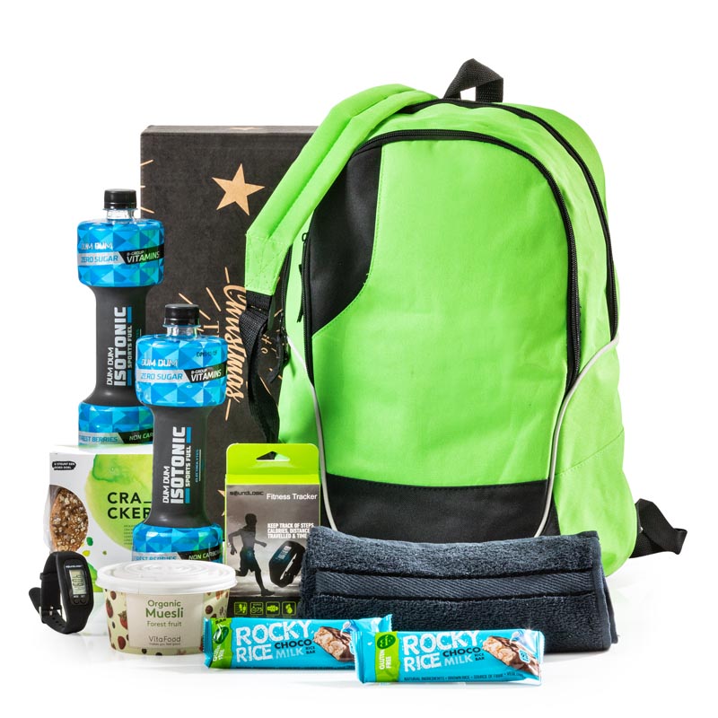 Dit fitness kerstpakket is voor jong en oud een waar geschenk om te krijgen. We zijn steeds bewuster gaan leven en daar hoort sporten uiteraard bij. Met de vrolijk gekleurde rugzak en daarbij de fitness tracker en handdoek gaat u helemaal goed voorzien naar de sportschool.