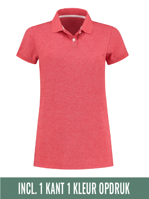 Dames polo met korte mouwen, 2 knopen en langere lengte. De polo is gemaakt van katoen/polyester pique.