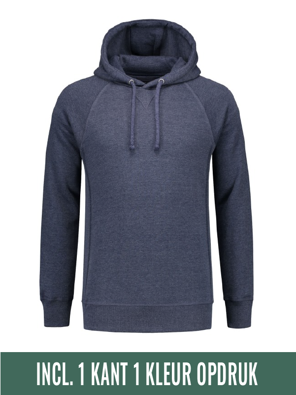 Deze sweater met capuchon is erg comfortabel en warm. Het model heeft zwarte ribben aan de zijpanelen, de zoom en aan de machetten. Ook is de capuchon dubbel gevoerd.