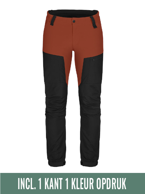 Een moderne trekking broek van een comfortabele en ventilerende 4-way stretch kwaliteit. Met delen van duurzame wind- en waterafstotende stof. Afgewerkt met elastiek in taille en een voorgevormde knie voor verbeterde mobiliteit. Twee voorzakken, twee beenzakken met rits en één achter. De onderzijde van de broekspijp is verstelbaar met elastiek en klittenband. Met ruimte voor het invoegen van kniebeschermers.
