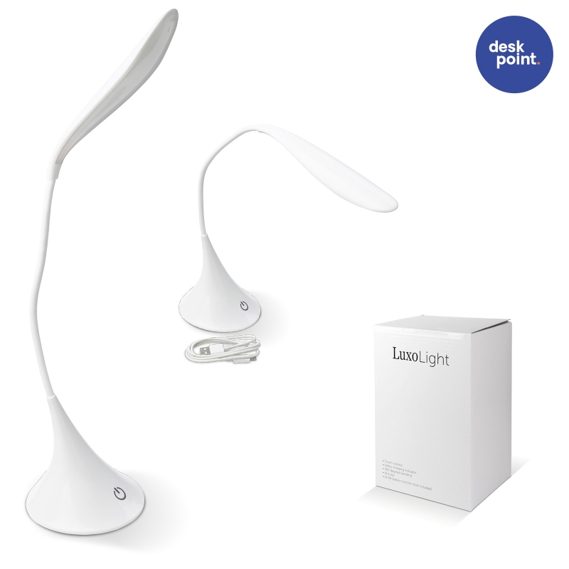Draadloze bureaulamp die werkt op batterijen en micro USB ingang. De lamp kan door middel van een touch functie worden bediend en is eenvoudig te verstellen. Batterijen worden niet bijgeleverd.