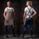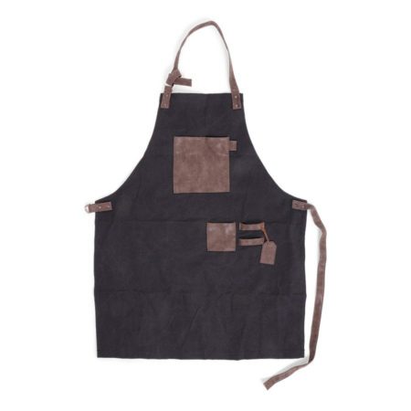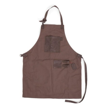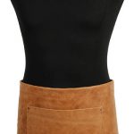 Leren sloof met zak. Zak: 18 cm hoog en 27 cm breed. Soepel runderleer met riem van buffelleer