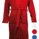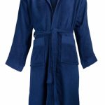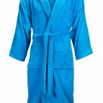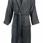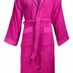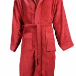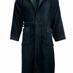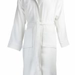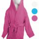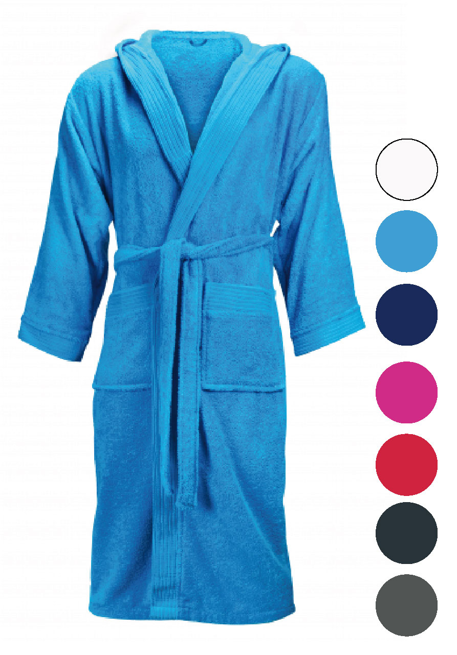 Badjas met capuchon en 2 opgenaaide zakken. Vastgezet koord aan de achterkant.