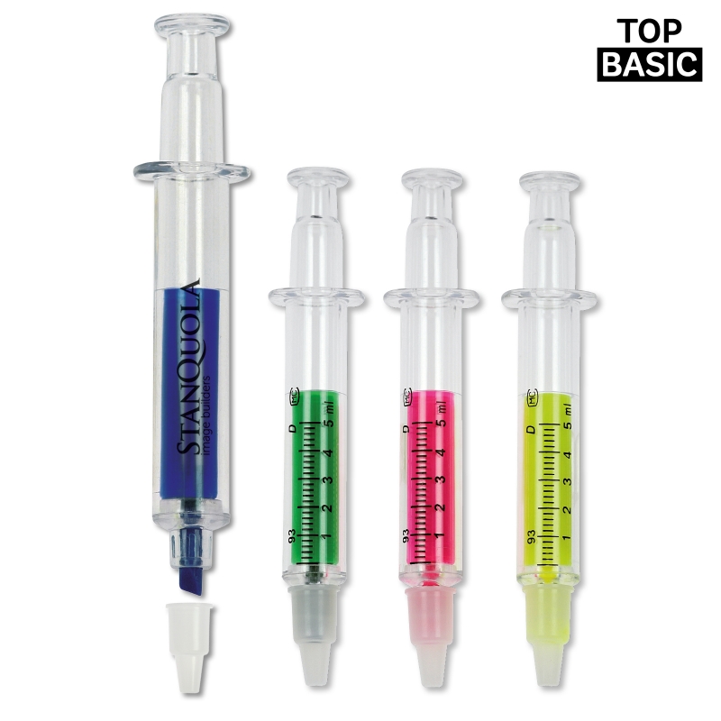 Transparante injectie tekstmarker. Kleur geeft schrijfkleur aan.