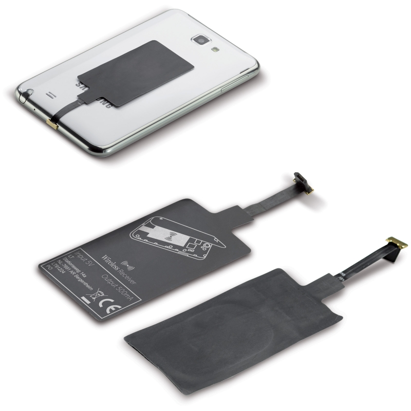 Maakt werkelijk elke Android/ Windows smartphone draadloos oplaadbaar. Het enige dat u hoeft te doen is deze ontvanger tegen de achterkant van uw smartphone leggen, dit samen in uw smartphone houder stoppen en uw telefoon op de draadloze oplader leggen
