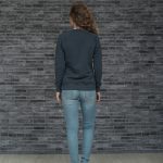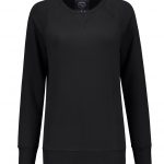 Deze sweater is erg comfortabel en warm. Het model heeft zwarte ribben aan de zijpanelen, de zoom en aan de machetten.