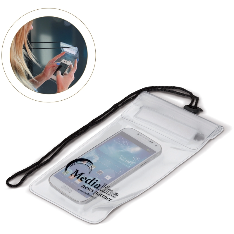 Waterwerende pouch voor uw smart phone, camera of MP3/4 speler. Ook geschikt om uw documenten en of paspoort te bewaren tijdens het reizen. Voorzien van omhangkoord. Geschikt voor bijna elk model smart phone.