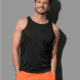 Tanktop interlock Active-Dry voor dames met racerback. Op de rug zit een reflecterend Active-Dry logo. De hals en armgaten hebben een band, de tanktop heeft zijnaden.
