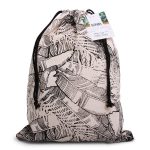Multifunctioneel katoenen tasje in Urban Jungle design. Voorzien van twee zwarte trekkoorden / draaghengsels. Gebruik dit tasje bijvoorbeeld als geschenkverpakking, schoenentas, accessoire-tas en handige opbergtas.