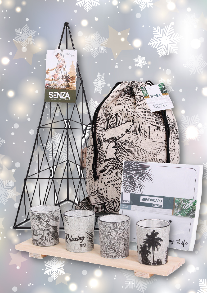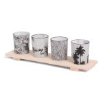 Deze sfeervolle houten presenteerplank met vier verschillende glazen waxinehouders is uitgevoerd in het moderne Urban Jungle thema. De stijlvolle glaasjes zorgen voor vele gezellige en veilige branduren. Per set verpakt in een full color showdoos.