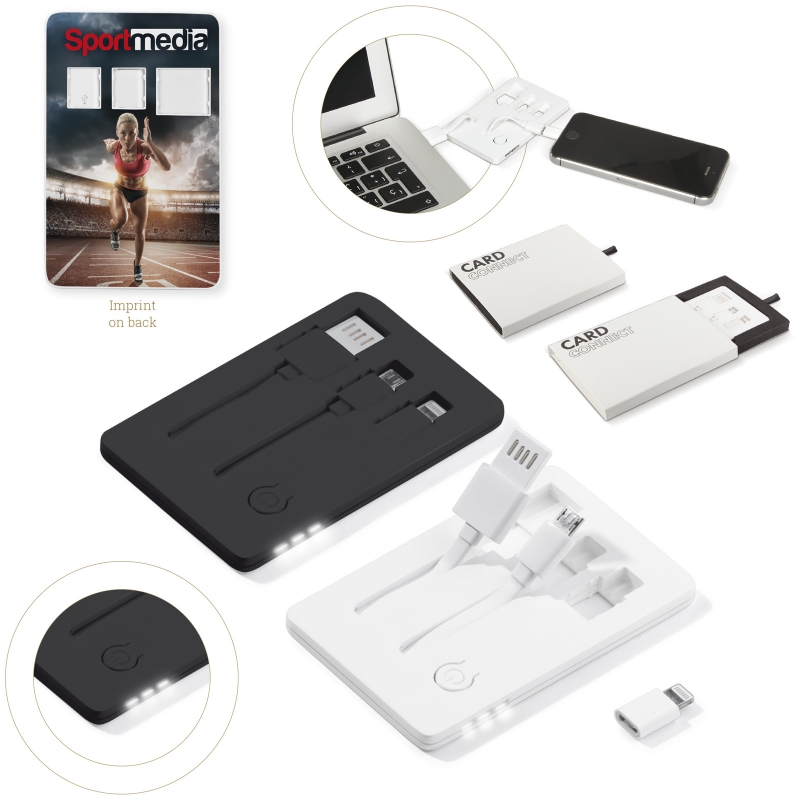 Designed by Toppoint USB kaart met zaklamp. Van USB naar micro-USB of MFI gecertificeerde Apple lightning kabel verwerkt in een kaartvorm. Inclusief zaklamp aan de zijkant. Zeer geschikt voor digitale druk en per stuk verpakt in een giftbox.