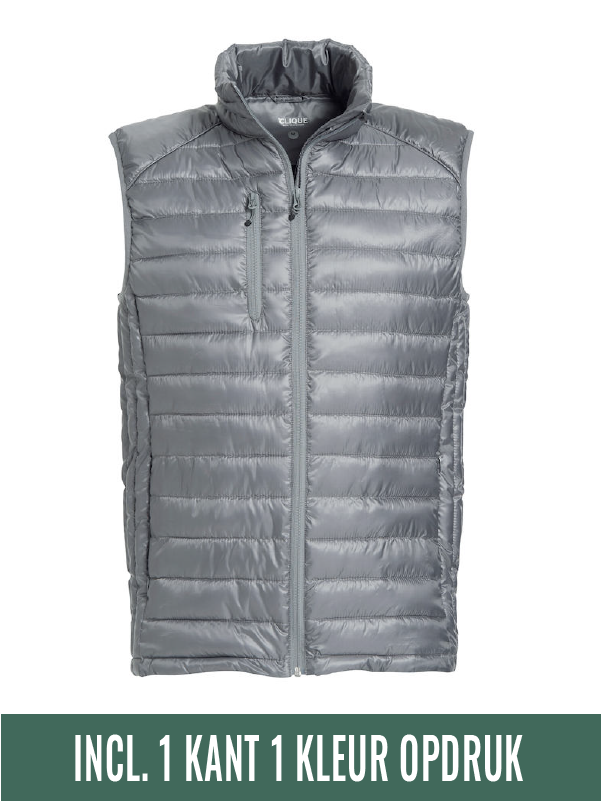 Moderne heren bodywarmer met drie zakken met ritssluiting en twee binnenzakken. Ook heeft de bodywarmer een handige doorvoer voor uw headset.